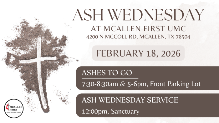 Address: First United Methodist Church, McAllen, 4200 N. McColl Rd., McAllen, TX US 78504
